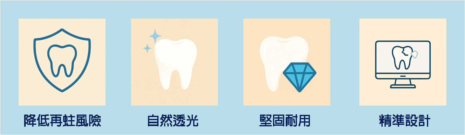 傳統樹脂補牙雖然快速,但常因材質易染色、密合度不足,導致二次蛀牙